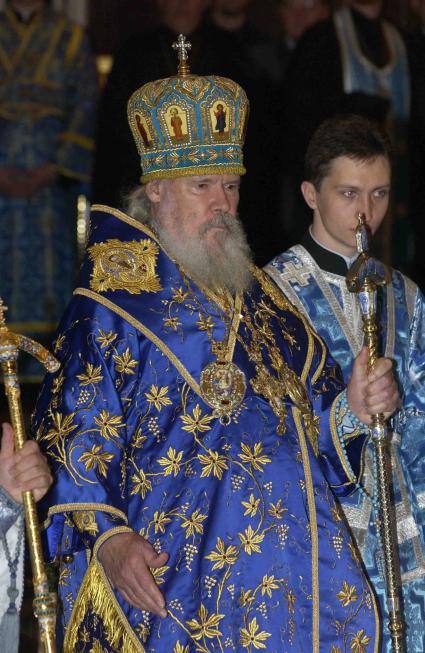 Патриарх Московский и всея Руси Алексий II Второй во время богослужения.
