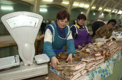 Девушка примеряет очки в торговой палатке в переходе у станции метро `Тверская`.