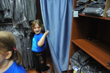 Подготовка к школе. На снимке: девочка в примерочной кабинке.