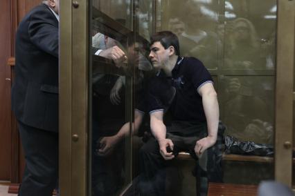 Обвиняемый в убийстве адвоката Станислава Маркелова и корреспондента `Новой газеты` Анастасии Бабуровой Никита Тихонов во время заседания Мосгорсуда.