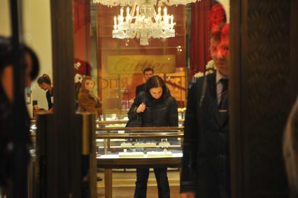Москва. Девушка изучает продукцию ювелирного магазина `Dolce&Gabbana`.