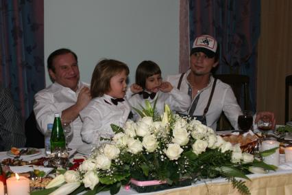 Диск213. Празднование дня рождения Яны Рудковской. 2007. На снимке (слева направо): бизнесмен Виктор Батурин, его сыновья Николай, Андрей и певец Дима Билан