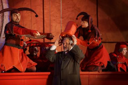 Екатеринбург. Екатеринбургский театр оперы и балета. Премьера спектакля 'Риголетто' Риголетто - Артист театра Юрий Девин в роли Риголетто (справа)