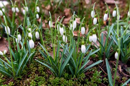Санкт-Петербург. Белоснежный подснежник зацвели в Ботаническом саду Петра Великого.
