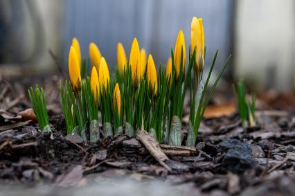 Санкт-Петербург. Желтые крокусы зацвели в Ботаническом саду Петра Великого.