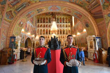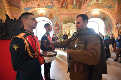 Тульская область. Губернатор Тульской области Алексей Дюмин во время молебна в честь 640 -й годовщины Куликовской битвы в храме Сергия Радонежского на поле Куликовом.