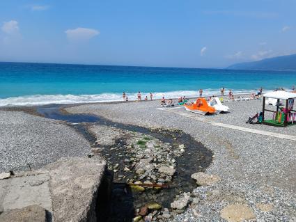 Абхазия. Гагра. Отдыхающие на берегу Черного моря.