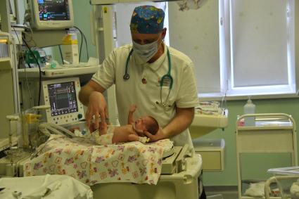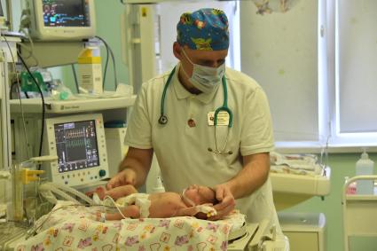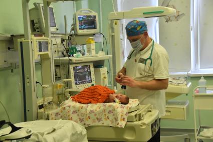 Московская область, г.Балашиха. Заведующий отделением реанимации новорожденных Максим Кондратьев за работой в Московском областном перинатальном центре.