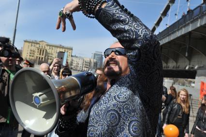 Митинг против хамства, организованный газетой `Комсомольская правда` (КП), прошел в Парке Горького. На снимке: артист Никита Джигурда.