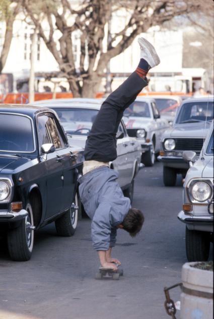 День города. Спортивный праздник. Показательные выступления паркурщиков. Мужчина делает сальто через лежащую на земле девушку.