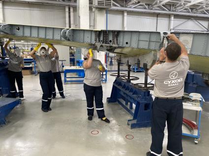 Сборка учебно-боевого самолета Як-130 в иркутском авиазаводе.