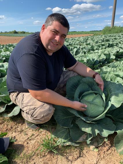 Беларусь. д. Станьково. Центр экологического туризма `Станьково`. Зоосад. Заведующий отделом экономики КП Евгений Беляков Центр экологического туризма `Станьково`у клетки с кроликами.