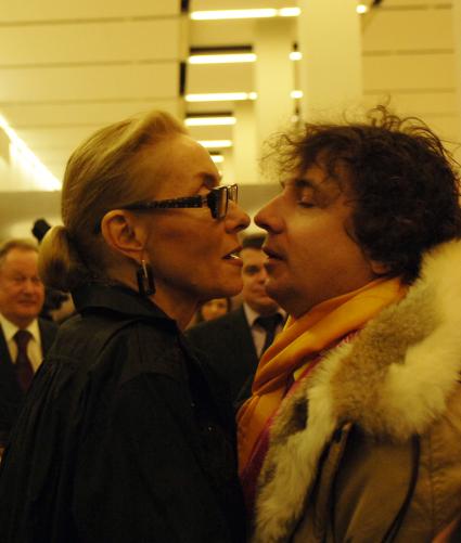 Выставка фотографа Cергея Берменьева в Манеже. На снимке: директор Московского дома фотографии Ольга Свиблова и фотограф Сергей Берменьев.