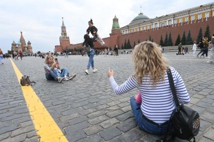 Подростки на брусчатке на Красной площади.