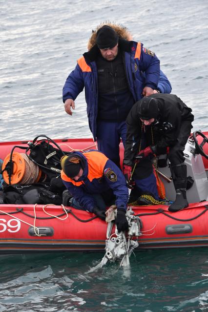 Сочи. Подъем обломков во время поисково-спасательных работ у побережья Черного моря, где потерпел крушение самолет Ту-154 Минобороны РФ.