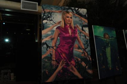 Ресторан `Карлсон`. Открытие выставки фотографа Белий Дэна `13 Звездных Фобий`. На снимке: фоторабота с участием телеведущей Леры Кудрявцевой.
