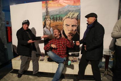 Диск248. Кинотеатр РОЛАН. Премьера документального фильма Гарика Сукачева ТО, ЧТО ВО МНЕ. 2017. На снимке (слева направо): актеры Василий Мищенко, Михаил Ефремов и Иван Охлобыстин