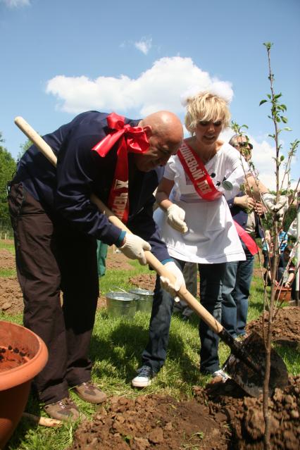 Диск97. Фестиваль искусств ЧЕРЕШНЕВЫЙ ЛЕС. Посадка деревьев. 2010 год. На снимке: певица Валерия и продюсер Пригожин Иосиф