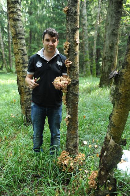 Cпециальный корреспондент КП Александр Рогоза срезает опята с дерева в подмосковном лесу у Симферопольского шоссе.