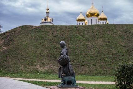 Московская область, Дмитров. Памятник основателю города Юрию Долгорукому и вид на Успенский собор Дмитровского кремля.