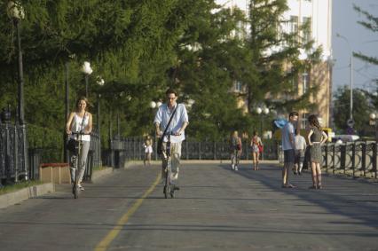 Екатеринбург. Горожане на самокатах на набережной реки Исеть во время летней жары