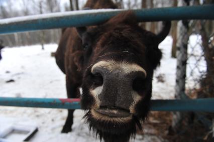 Приокско - Террасный государственный природный биосферный заповедник. На снимке: зубр у кормушки.