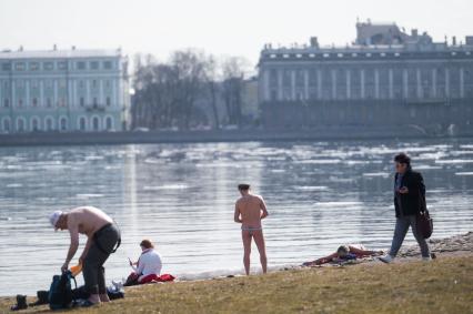 Санкт-Петербург. Загорающие люди у Петропавловской крепости.