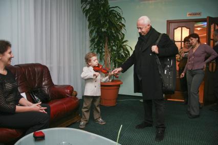 Дирижер Владимир Спиваков слушает как играет на скрипке юное дарование, в гостинице `Сибирь` города Барнаул. (ноябрь, 2008 г.)